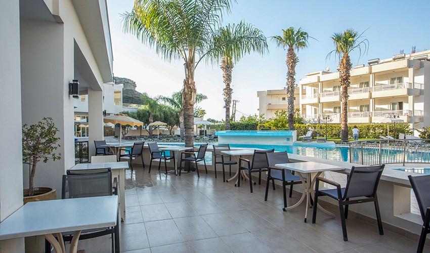 | Příjemný komplex rodinného hotelu se skládá z hlavní budovy, 3 vedlejších budov a krásné udržované zahrady. Nachází se v klidnější části oblíbeného turistického letoviska Faliraki, jehož centrum s velkým množstvím obchůdků, taveren, kaváren a barů je vzdáleno 2 km. Ve Faliraki také najdete vyhlášený aquapark. Poloha hotelu v mírném svahu skýtá jeho hostům neopakovatelný výhled na Středozemní moře. Dlouhá písečná pláž, oceněna Modrou vlajkou za čistotu moře, leží 450 m od hotelu. Do hlavního města Rhodos (12 km) můžete pohodlně dojet místní autobusovou dopravou (zastávka 400 m od hotelu). Hotel doporučujeme všem věkovým kategoriím i rodinám s dětmi, kteří ocení polohu v klidné části rušnějšího letoviska a dostupnost hlavního města ostrova. |